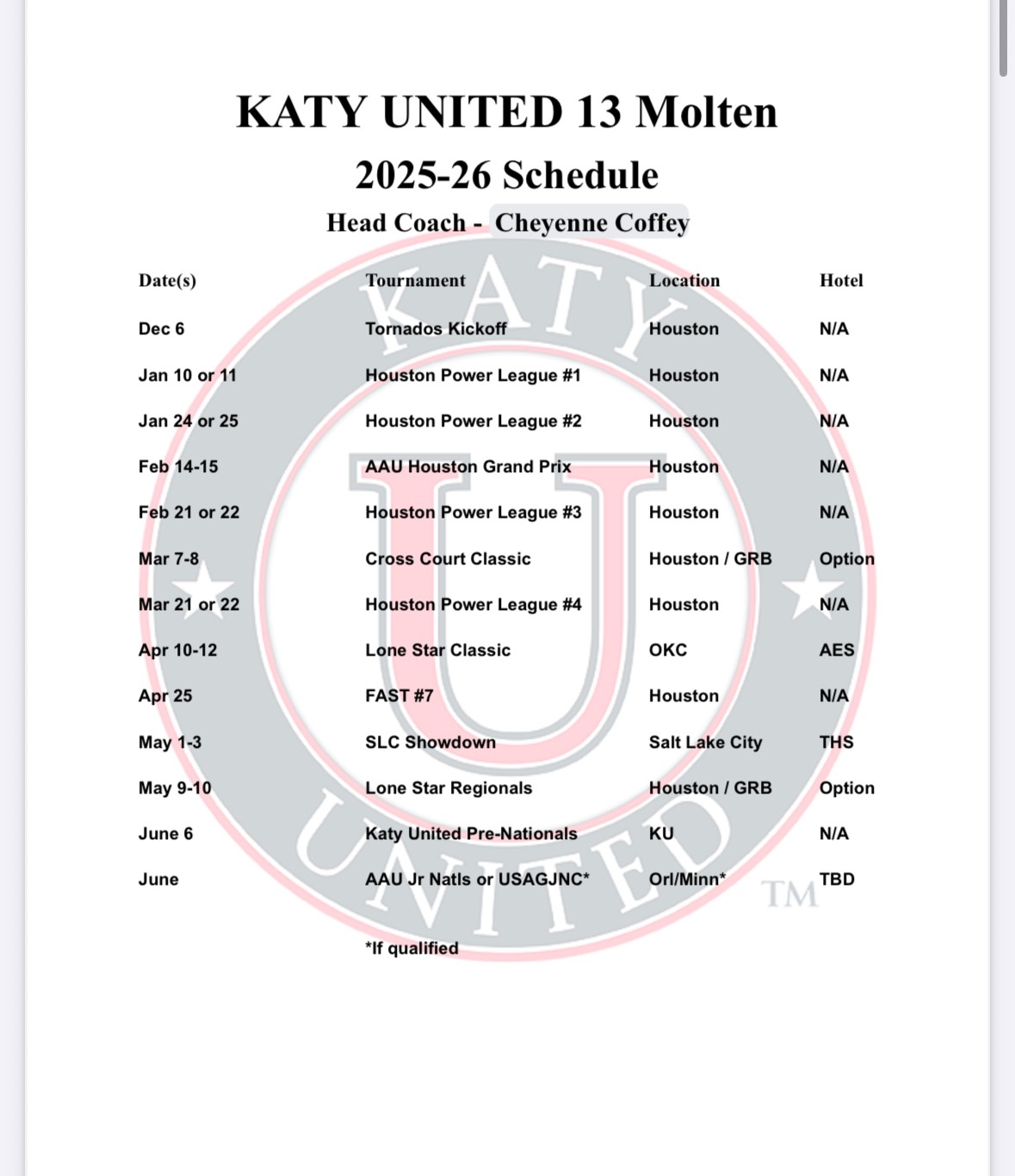 practice 5:30 PM (2h) Katy United Court 1 12 Fathom 13 Fathom 13 Navy 14 Fathom - Jorge 14 Navy 14 Red 14 White