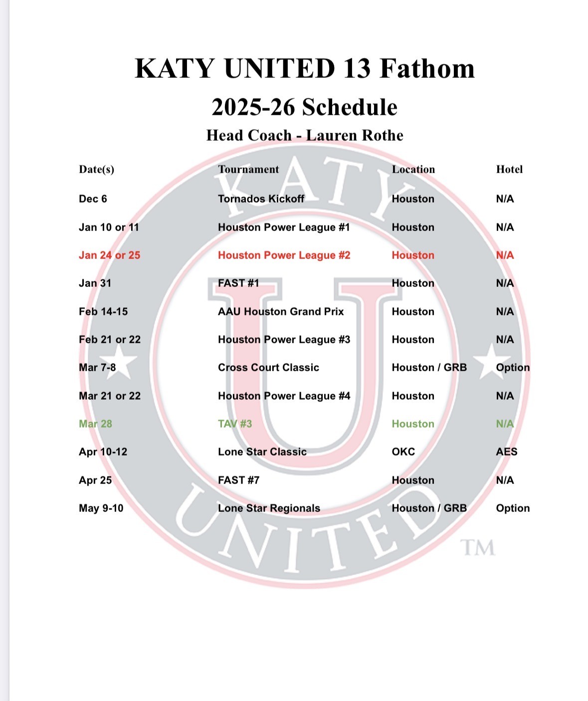 practice 5:30 PM (2h) Katy United Court 1 12 Fathom 13 Navy 14 Fathom - Jorge 13 Molten 14 Navy 14 Red 14 White