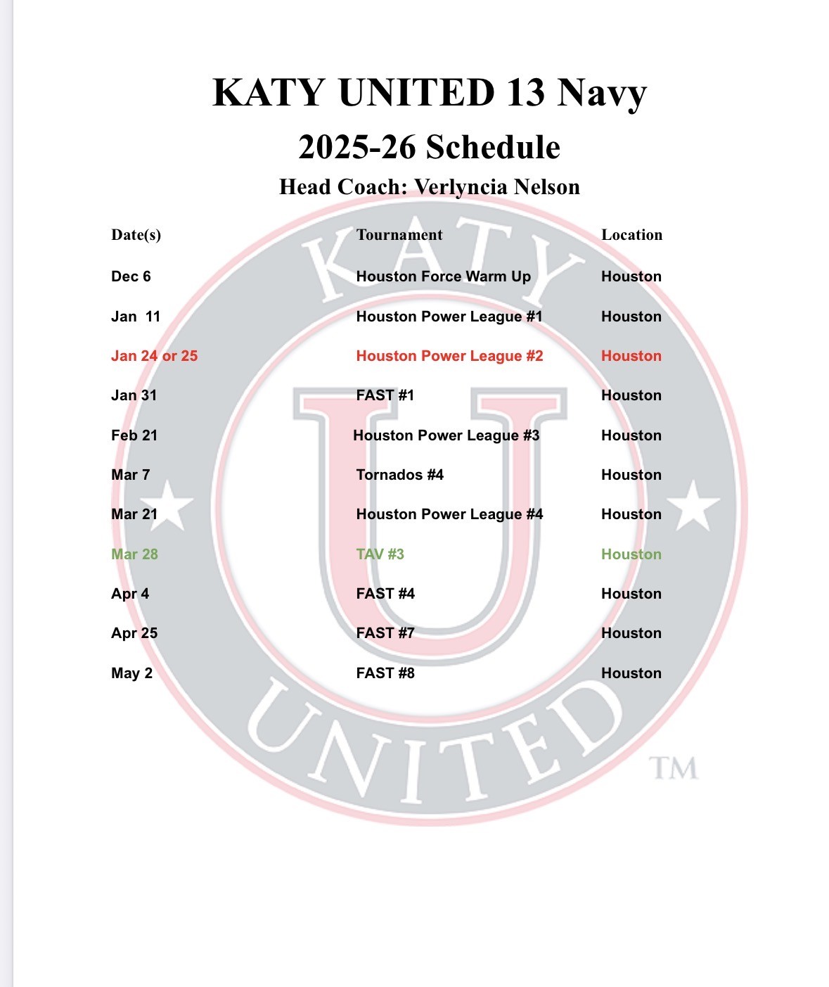 practice 5:30 PM (2h) Katy United Court 1 12 Fathom 13 Fathom 14 Fathom - Jorge 13 Molten 14 Navy 14 Red 14 White