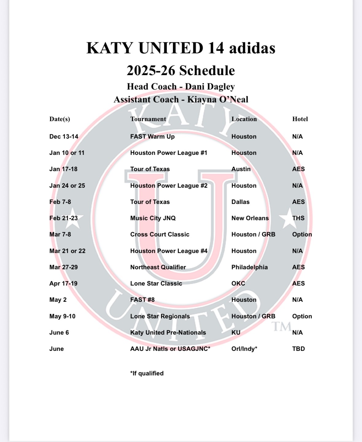 practice 5:30 PM (2h) Katy United Court 1 12 Adidas 12 Molten 13 Adidas 14 Molten 14 Fathom - Sarah 15 Navy 15 Red