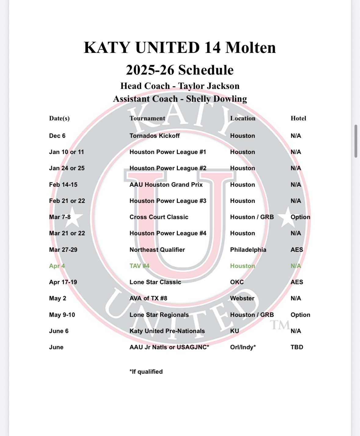practice 5:30 PM (2h) Katy United Court 1 12 Adidas 12 Molten 13 Adidas 14 Adidas 14 Fathom - Sarah 15 Navy 15 Red