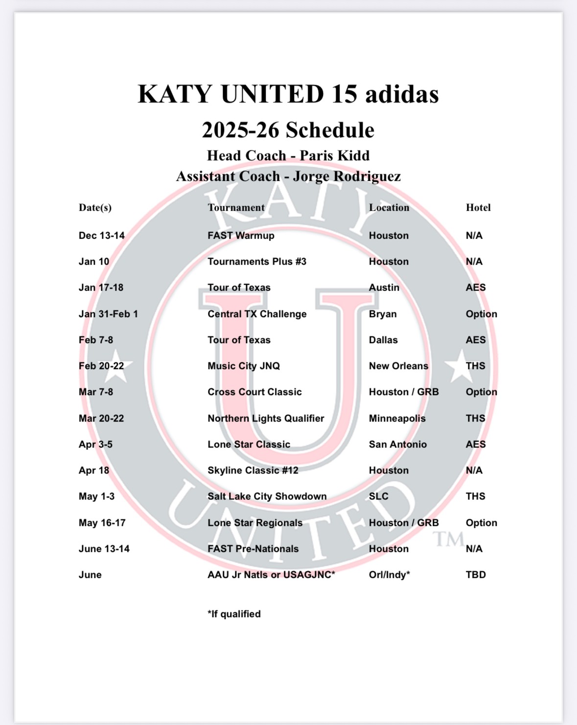 practice 7:30 PM (2h) Katy United Court 1 15 Molten 16 Adidas 16 Molten 17 Adidas 17 Molten 18 Adidas